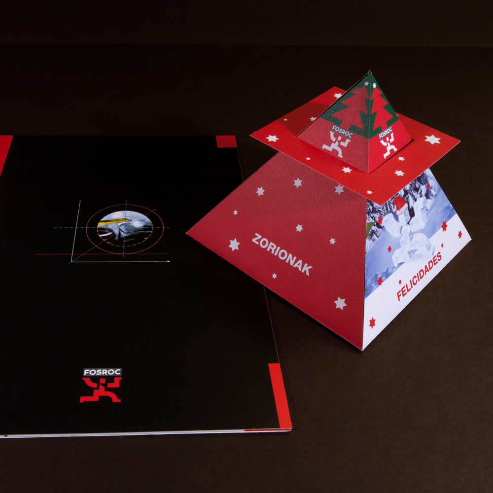 Es una empresa que realiza aditivos para la construcción, realizamos una campaña en prensa en revistas especializadas de sus diferentes productos, catálogos, papelería, tarifas… y como guinda una Felicitación navideña de lo más original, haciendo un guiño a las pirámides como símbolo de construcción duradera.